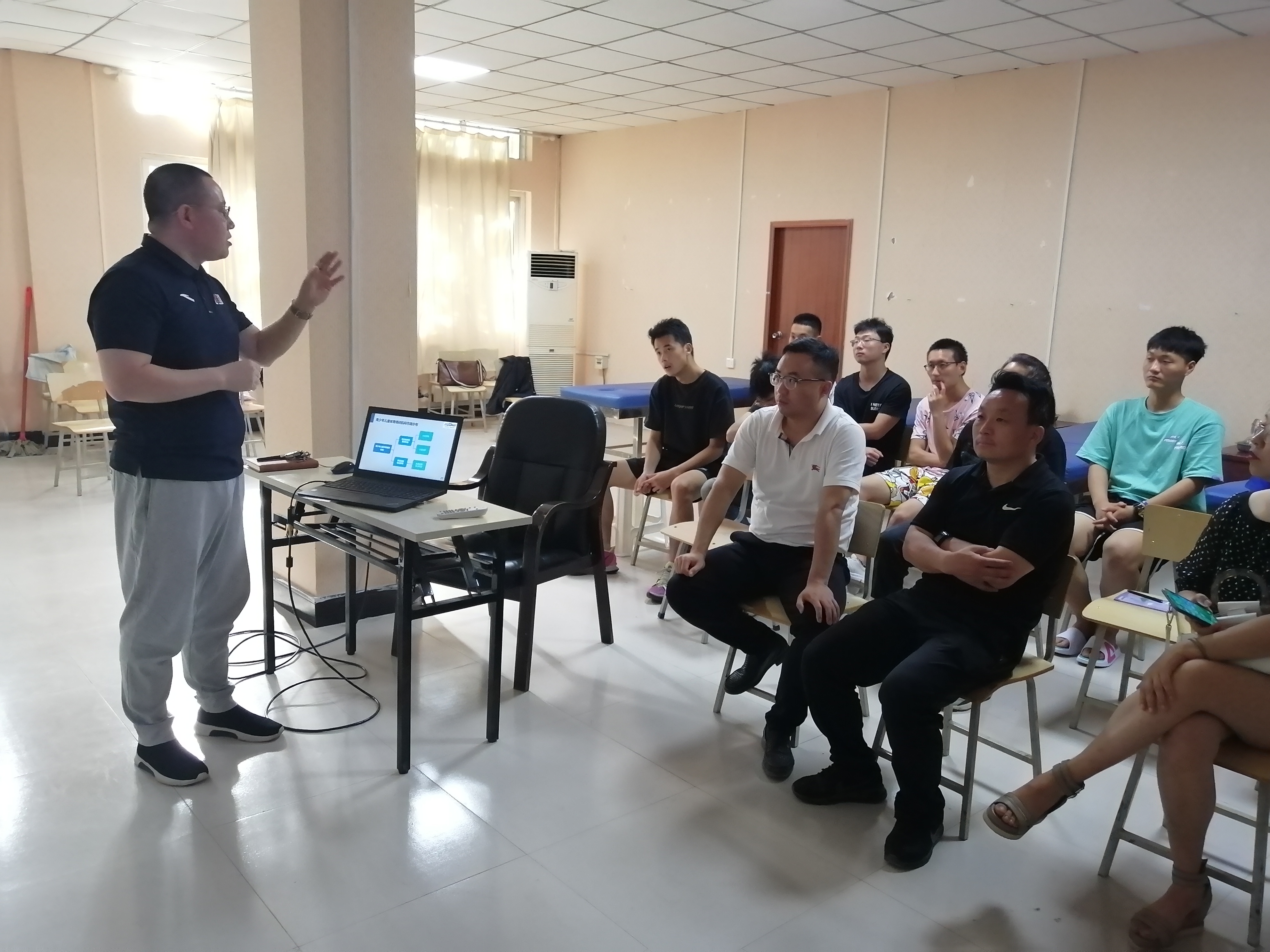 2021年6月4日下午,江苏天行在线注册体育科学研究院院长胡冠宇,受邀来到许昌学院,对少儿体适能培训行业现状、研究热点及竞品分析做分享。参加此次分享会议的有来自许昌学院体育学院副院长董世彪,幼儿体育教研室主任姚乐辉和幼儿体育教研室全体成员。